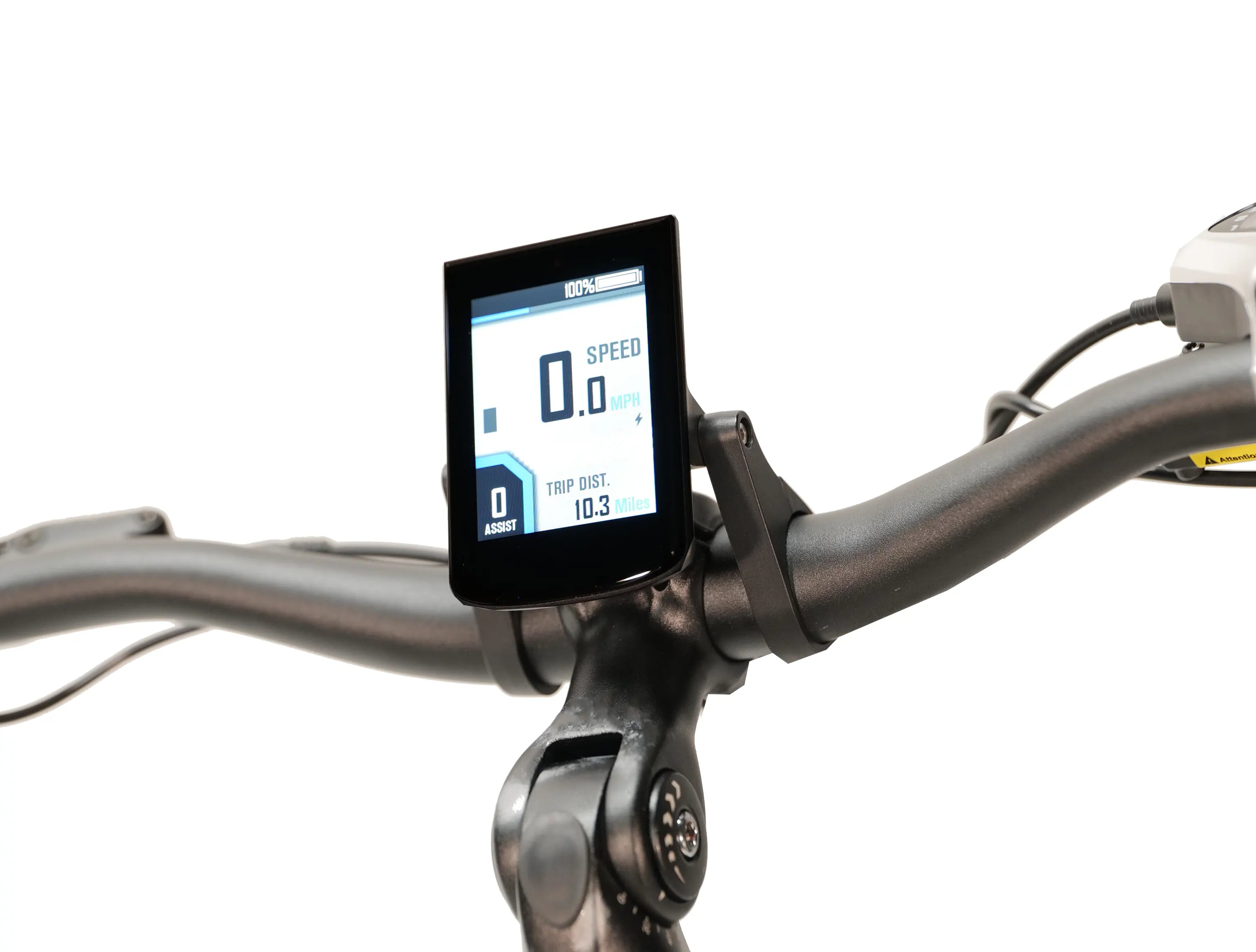 Experience the ultimate in e-bike control with the Ariel Rider Kepler's Smarter Display. This advanced display allows you to easily monitor your speed, battery life, and more while you ride. With intuitive controls and a sleek, modern design, comes great functions such as bluetooth connectivity, USB port and over-air updates.