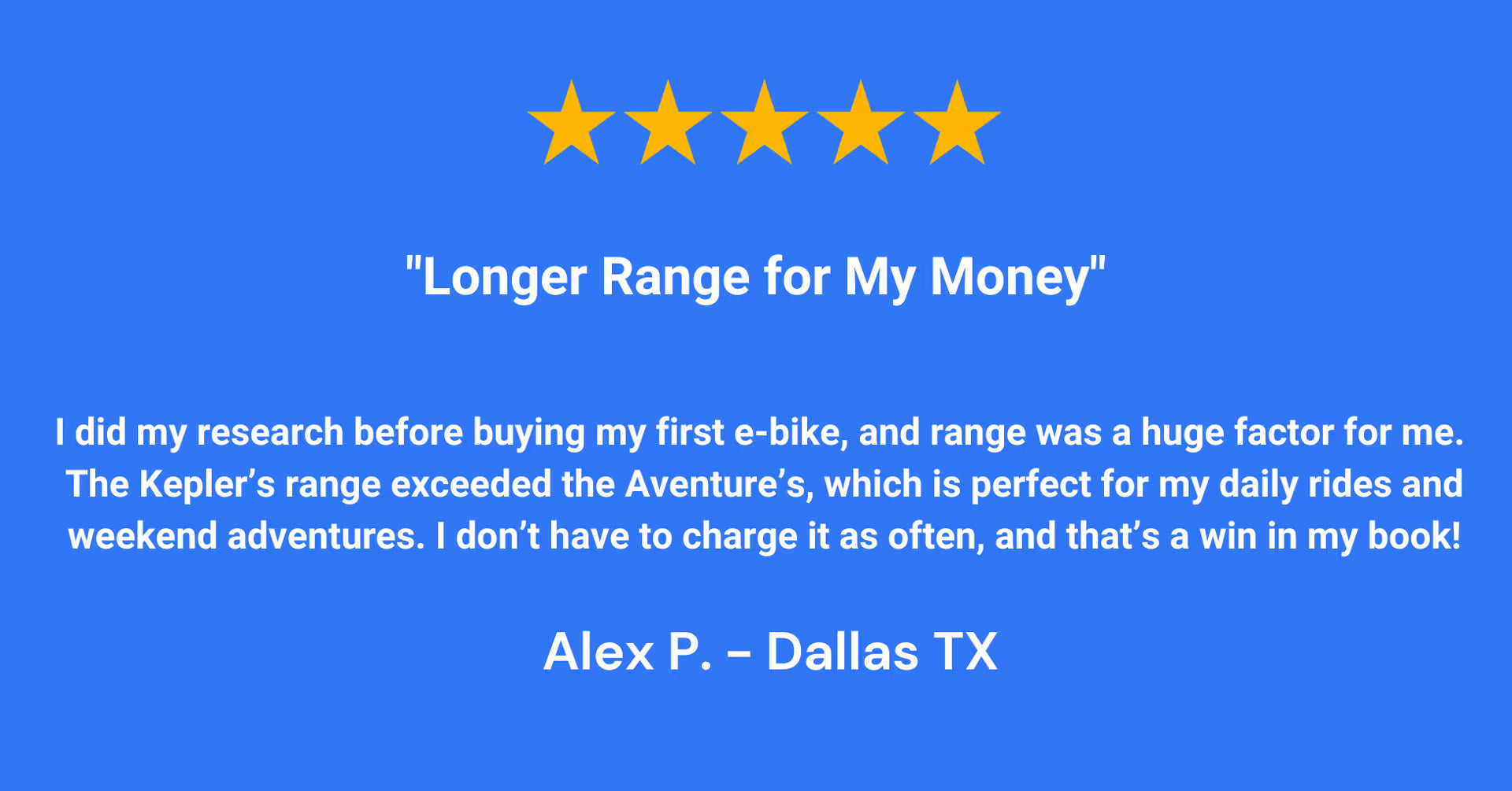 The Kepler is going to handle steep hills better and get you there quicker with it's more powerful motor. Also the Kepler features premium brakes to stop your heavy E-bike faster, all while costing less money.