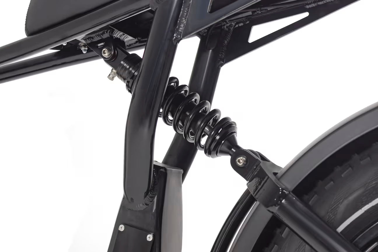 The X-Class electric bike boasts a top-of-the-line rear shock that sets it apart from the competition. 100% CNC machined for precision, this shock offers rebound adjustment for improved handling, support, and a lower stance.