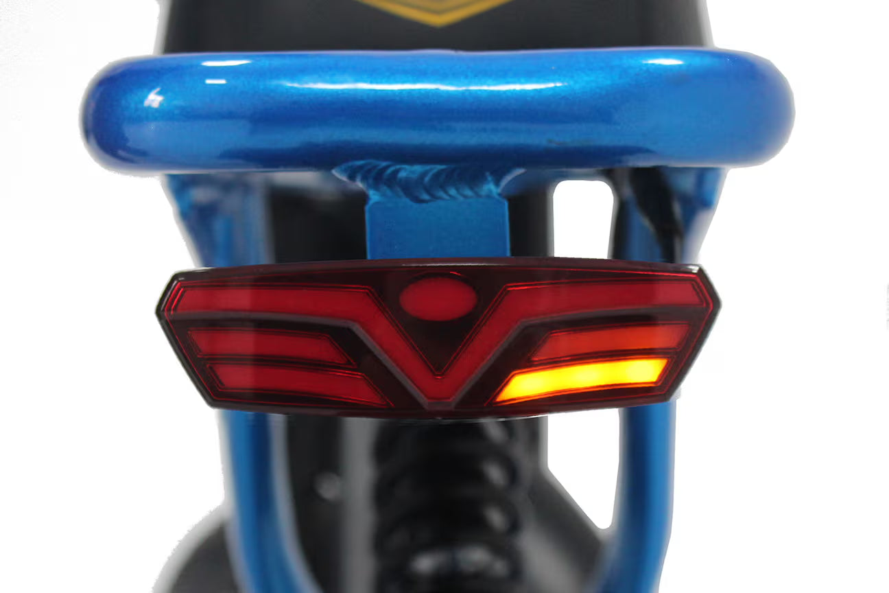 The X-Class 52V e-bike stands out with its retro-inspired large motorcycle headlight, complete with daylight function. While the design may evoke nostalgia, the technology is anything but outdated. With 2W power and 80 lux illumination, this headlight is one of the strongest and brightest on the market, ensuring maximum visibility and safety.