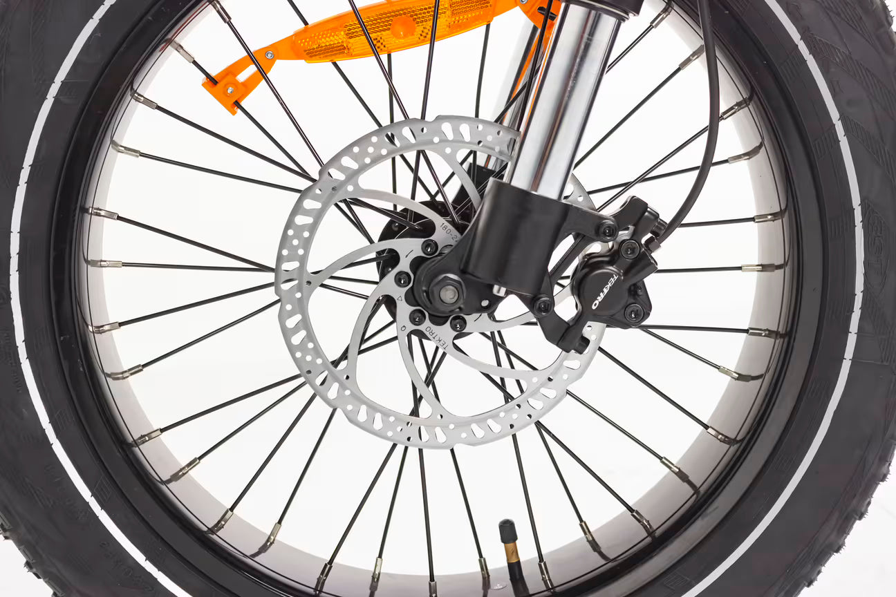 X-Class is a powerful ebike and powerful motor needs brakes that can stop at a dime. The powerful front and rear hydraulic brakes also have motor inhibitors.