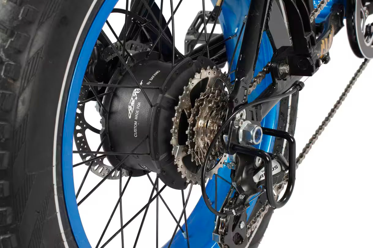 We use the unmatched power of Bafang 1000W custom hub motors. This high-performance motor ensures unparalleled acceleration and hill-climbing capabilities. You won't just ride, you'll dominate the road.